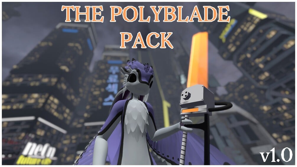 Oh yeah, printing blades! I better explain that XD So in the Avali Lore, many weapons are crafted using handles with mounted resin printers, so when a weapon breaks it can be easily remade on the fly! Obviously these are super high tech printers, being able to print immediately and keep their prints fastened to the weapon's base, they're some pretty amazing scifi tech! Unfortunately, almost no public avali props feature this awesome bit of Lore, mostly just being static models. The PolyBlade pack sets out to rectify that!